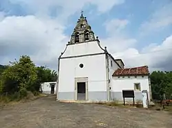 La iglesia parroquial se localiza en el lugar de Restiello y fue construido en 1837, según figura en la inscripción situada sobre su portada. Su planta es de cruz latina, con ábside y brazos del crucero cubiertos con bóveda de arista, y la nave con armadura y plafón de madera.
