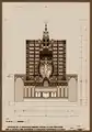 El dibujo en cuestión es la sección transversal de una capilla adosada a la iglesia de Sant Feliu con cubierta a dos aguas sobre forjado de viguetas de madera apoyadas en arcos ojivales nervados, sistema característico del gótico catalán de arcos diafragmáticos y viguería leñosa que se puede ver por ejemplo en la capilla de Santa Ágata de Barcelona.[1] En el ábside de la capilla y tras un arco apuntado con siete vidrieras de igual forma se sitúa el altar y su retablo en forma de panel plano, de marcada inspiración gótica, con las figuras escultóricas por delante y custodiado bajo un doselete cuyo motivo principal representa la crucifixión.