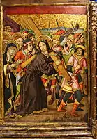 La composición de la primera tabla, la Santa Cena evoca la pintura homóloga de Jaume Huguet del gran retablo de San Agustín del convento de Sant Agustí Vell de Barcelona (1463-1486), actualmente en el MNAC. La segunda tabla corresponde al pasaje de la Oración en el Huerto de Getsemaní, también en el MNAC. No se conoce la tercera tabla de este ciclo que por analogía y simetría iconográfica del retablo, se piensa que debía corresponder a la Flagelación de Cristo o un Ecce Homo. El último panel estaría dedicado a El camino del Calvario, un tema también tratado por Huguet el Retablo de San Agustín y con el que guarda gran similitud.[28]