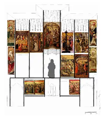 Las otras cuatro calles estarían construidas por ocho tablas (de las que se conservan seis) dedicadas al ciclo figurativo de San Esteban. La predela, dedicada a la Pasión, estaría formada por cuatro tablas separadas en dos bloques de las que hoy se conservan tres. Por último, el guardapolvo habría hospedado cuatro tablas con imágenes de los profetas.[5]