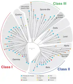 - Gifford R, Tristem M (May 2003). «The evolution, distribution and diversity of endogenous retroviruses». Virus Genes 26 (3): 291-315. PMID 12876457. doi:10.1023/A:1024455415443. Archivado desde el original el 15 de febrero de 2013. Consultado el 19 de junio de 2013.