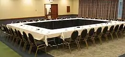 En una organización, las reuniones suelen celebrarse en salas de reuniones o en salas de juntas.