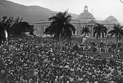 ![]() Manifestantes rodeando el palacio nacional de Haití, enero de 1946. | ||