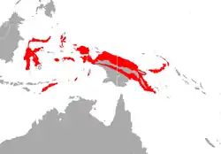 Se encuentra en Indonesia, Timor Oriental y Papúa Nueva Guinea.