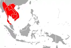 Se encuentra en Camboya, Laos, norte de Malasia Peninsular, Birmania, Tailandia y Vietnam.