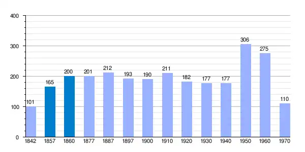 | Gráfica de evolución demográfica de Ribarredonda[3] entre 1842 y 1970 |