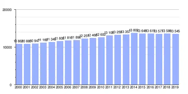 | Gráfica de evolución demográfica de Ribeira (parroquia) entre 2000 y 2019 |