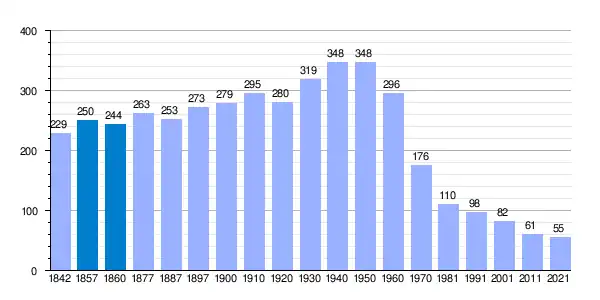 | Gráfica de evolución demográfica de Riberos de la Cueza[1] entre 1842 y 2021 |
