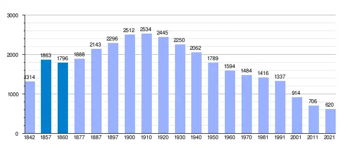 | Gráfica de evolución demográfica de Riello[48] entre 1842 y 2021 |