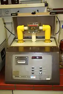 También podemos definirla como la máxima tensión que puede soportar un aislante sin perforarse. A esta tensión se la denomina tensión de rotura de un dieléctrico.[cita requerida]