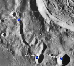 Su distancia al centro del cráter Hansteen (que tiene unos 22,5 km de radio) oscila entre los 30 km de su extremo septentrional, y los 35 km que presenta en su extremo sur, donde se aproxima al cráter satélite Hansteen B.
