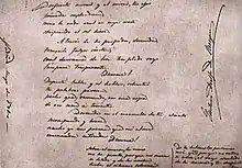 Rimas de Bécquer es el conjunto de poemas de este escritor sevillano del ‘tardorromanticismo español’ que, reunido con ese título, fue publicado después de su muerte.[1] Obra universalmente reconocida como «la más honda y fina poesía del siglo xix, en tono menor»,[2] fue ridiculizada por Núñez de Arce, elogiada por Antonio Machado, admirada por Alberti y Lorca,[3] y homenajeada por Rubén Darío y Juan Ramón Jiménez.[lower-alpha 1] Entre los estudios clásicos que sobre las Rimas se han realizado,[4] –apenas 76 poemas breves en su primera edición, aunque existen ediciones que reúnen hasta 96 piezas poéticas en algunas ediciones posteriores– pueden destacarse los de Rafael Montesinos, José Luis Cano o Luis Cernuda. En su aspecto formal (métrica y rima) es refrescante e innovadora la abundancia de rima asonante y versos libres.[5]