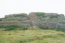 Mientras un ráth (anglicado en rath) estaba hecho de tierra, un caiseal (noroeste de Irlanda, anglicado en cashel) y cathair (suroeste de Irlanda) estaba hecho de piedra. Un dun era una construcción más elaborada, siendo el asentamiento de un gobernante.