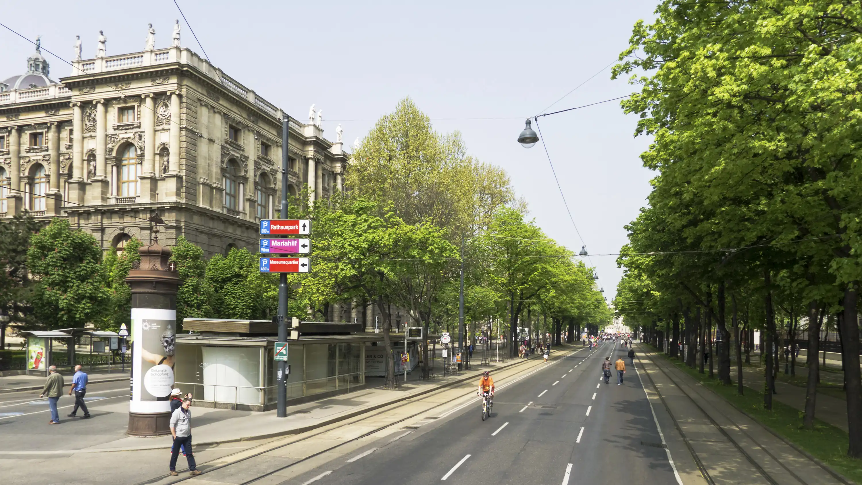 - Dr.-Karl-Renner-Ring (previamente Franzensring) de la Bellariastraße bis Stadiongasse.