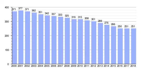 | Gráfica de evolución demográfica de Riobó (parroquia) entre 2000 y 2018 |