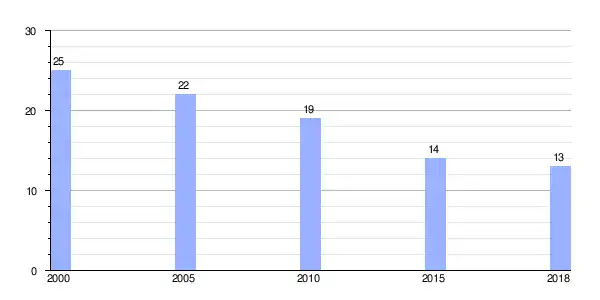| Gráfica de evolución demográfica de Riobó (aldea) entre 2000 y 2018 |