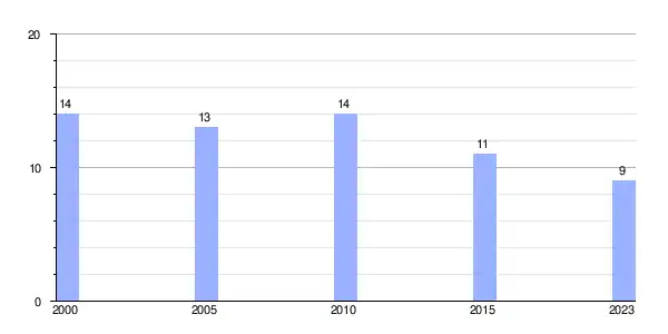 | Gráfica de evolución demográfica de Riobodas entre 2000 y 2023 |