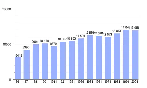 | Gráfica de evolución demográfica de Riposto entre 1861 y 2001 |