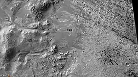 | Cráter Ritchey, fotografía de la cámara CTX a bordo del Mars Reconnaissance Orbiter. Lado occidental del cráter (El norte, hacia la izquierda de la fotografía). |