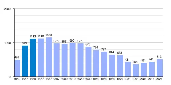 | Gráfica de evolución demográfica de Riudaura[3] entre 1842 y 2021 |
