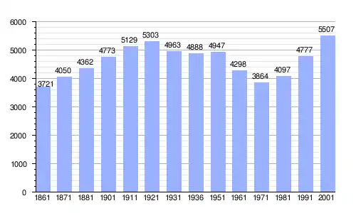 | Gráfica de evolución demográfica de Rivergaro entre 1861 y 2001 |