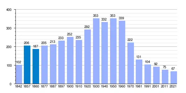 | Gráfica de evolución demográfica de Rivilla de Barajas[7] entre 1842 y 2021 |