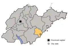 La ciudad prefectura de RizhaFo administra 2 distritos y 2 condados: