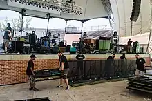 Roadies preparando el escenario para Grace Potter and the Nocturnals en nTelos Pavilion.