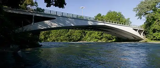 Robert Maillart tuvo una intuición y un genio que explotó la estética del hormigón. Diseñó arcos triarticulados en los que se combinaron el tablero y las nervaduras del arco para producir estructuras estrechamente integradas que evolucionaron hacia arcos rígidos de hormigón armado muy delgados y losas de hormigón. El puente de Salginatobel (1930) y el puente de Schwandbach (1933) son ejemplos clásicos de los puentes de arco triarticulados y de los puentes de arco reforzados con la cubierta de Maillart, respectivamente. Han sido reconocidos por su elegancia y su influencia en el diseño y en la ingeniería de puentes posteriores.[8]