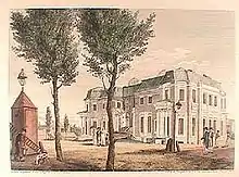 En 1794 comenzó la construcción de una mansión en Chestnut Street en Filadelfia diseñado por Pierre Charles L'Enfant. La mansión inconclusa que se conoce como "locura de Morris,[11] y la tierra eventualmente se convirtió en la filaSansom Street. Mármoles de esta casa fue adquirida por Latrobe y adornar edificios y monumentos de Rhode Island a Charlestown, Carolina del Sur.