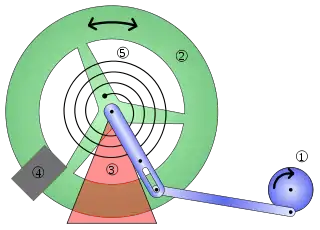 Rueda de Pohl: un péndulo rotativo (2) acoplado sobre un resorte en espiral (3) con una estimulación variable (1). El giro es controlado por un freno electromagnético (4). Es usado para demostrar "movimiento caótico" como también "oscilaciones armónicas.