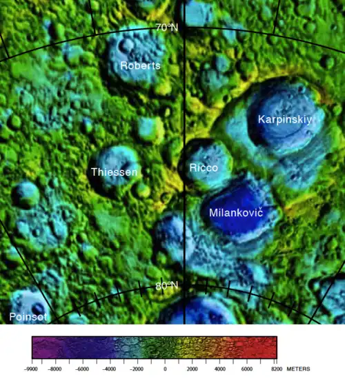 ![]() Localización de Roberts (centro del borde superior de la imagen). El norte está orientado hacia abajo. |