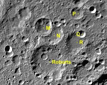 Por convención estos elementos son identificados en los mapas lunares poniendo la letra en el lado del punto medio del cráter que está más cercano a Roberts.