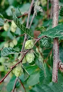 Su tronco es café oscuro y a menudo se bifurca en dos grandes ramas principales. Tiene hojas alternas con ondulaciones entre la nervadura y el borde aserrado. Especie monoica, presenta flores unisexuales (masculinas y femeninas), ambas son pequeñas y están rodeadas por brácteas de color verde, por lo que son poco llamativas. El fruto es una cúpula, el cual se abre en 4 valvas y presenta tres nueces aladas.