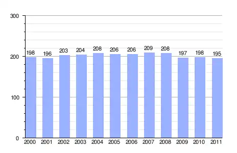 Población (2000-2011) según el nomenclátor de unidades poblacionales del INE.[3] |