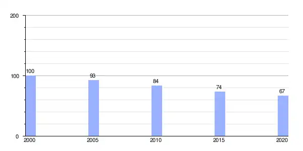 | Gráfica de evolución demográfica de Roca (parroquia) entre 2000 y 2020 |