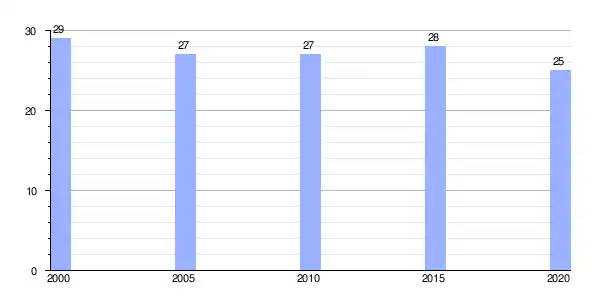| Gráfica de evolución demográfica de Roca (aldea) entre 2000 y 2020 |