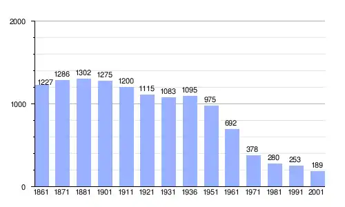 Gráfica de evolución demográfica de Rocca Pia entre 1861 y 2001