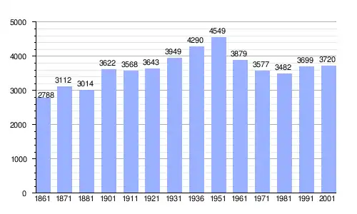 | Gráfica de evolución demográfica de Rocca d'Evandro entre 1861 y 2001 |