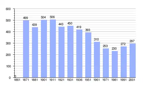 | Gráfica de evolución demográfica de Roccagiovine entre 1861 y 2001 |