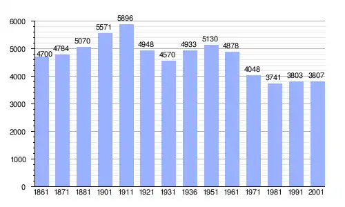 | Gráfica de evolución demográfica de Roccamonfina entre 1861 y 2001 |