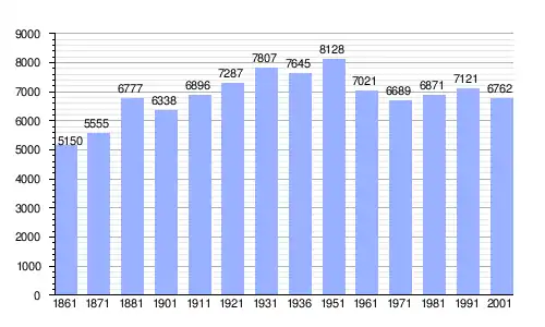 | Gráfica de evolución demográfica de Roccella Ionica entre 1861 y 2001 |