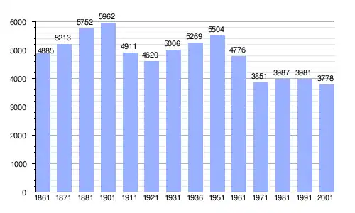 | Gráfica de evolución demográfica de Rodi Garganico entre 1861 y 2001 |