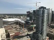 La arena desencadenó una "explosión de hospitalidad" en el centro de la ciudad antes de que se rompiera el terreno, ya que las empresas competían por propiedades alrededor del lugar de la arena. A principios de 2014, había muchas menos opciones de arrendamiento o compra a medida que aumentaba la competencia, incluido Brad J. Lamb , quien anunció un par de nuevas torres de condominios por $ 225 millones.[14][15]