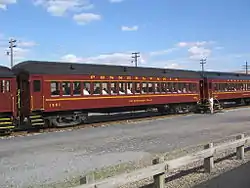 Viejo vagón de pasajeros restaurado de los Ferrocarriles de Pensilvania (Estados Unidos), mostrando el color rojo toscano que caracterizaba a esa línea en los años 1920.