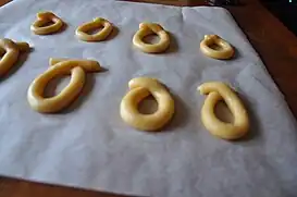 La elaboración se compone de huevos batidos mezclados con azúcar a los que se les va añadiendo aceite y anís, posteriormente se coloca todo esto en un volcán de harina y se extiende la masa que se ha de cortar en tiras para poder dar forma a los rollos y finalmente freírlos. La forma de los rollos suele ser redonda aunque también se le puede añadir una especie de lazo. Cabe destacar que en lugar de aceite se pueden hacer con mantequilla, o con manteca (es la forma más tradicional).[1] Existe un proverbio relacionado con los rollos de San Antón en el refranero popular, el cual dice "Quien roba un rollo a San Antón, novios tendrá un montón".