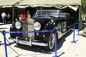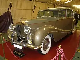 | 4BP3 | P2B | 'Abd al-Ilah, Príncipe regente de Irak | Hooper | Limusina de 7 plazas | 9891 / 8370 | Negro[39] | Cuero celeste grisáceo | 31 de marzo de 1953 | Construido para la coronación de su sobrino, el rey Faisal II. Años más tarde todos los miembros de la familia real fueron asesinados durante el golpe de Estado de 1958. En esas fechas el automóvil se encontraba en Londres en el taller de Hooper para mantenimiento, finalmente fue vendido en EE. UU. Se expone en el Museo Real del Automóvil, Amán, Jordania. | ![]() |