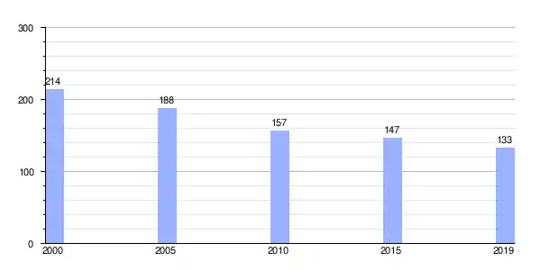 | Gráfica de evolución demográfica de Romariz entre 2000 y 2019 |