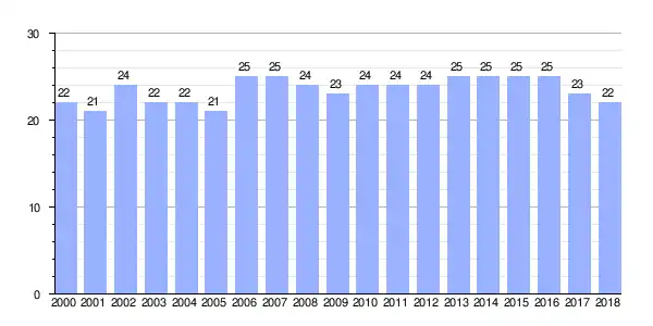 | Gráfica de evolución demográfica de Romelas entre 2000 y 2018 |