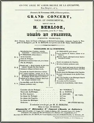 La obra fue estrenada en tres conciertos conducidos por Berlioz en el conservatorio de París el 24 de noviembre, 1 y 15 de diciembre de 1839, ante una audiencia integrada por muchos de los intelectuales parisinos, entre los que se encontraba Richard Wagner. Si bien la reacción inicial ante esta obra fue dispar, como podría esperarse de una obra tan innovadora, estas tres funciones fueron luego reconocidas como un verdadero triunfo de Berlioz.